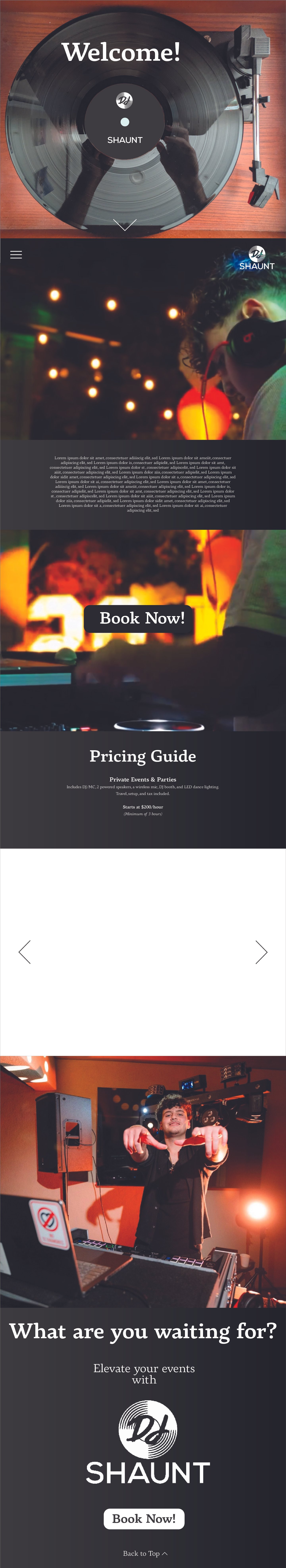 DJ Shaunt is new and upcoming DJ who needed a website design to launch his DJ business. This project required several meetings with the client to understand his personality and goals to help craft a design that would fit his persona. Through a few graphic iterations, we landed on a combination of photography and realistic digital art to create a lively feel to connect with potential clients. It was important to keep it simple yet ensure key components were included such as pricing and booking.