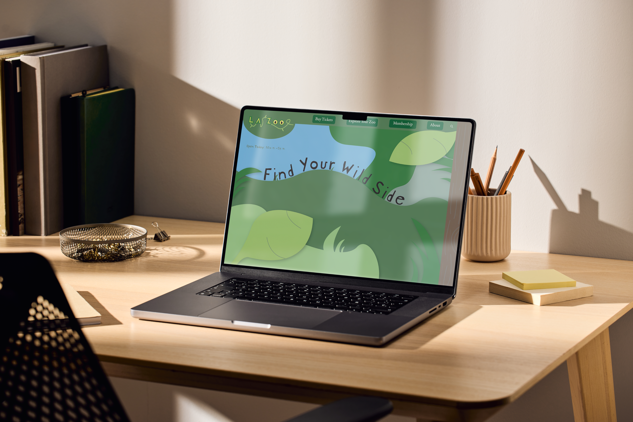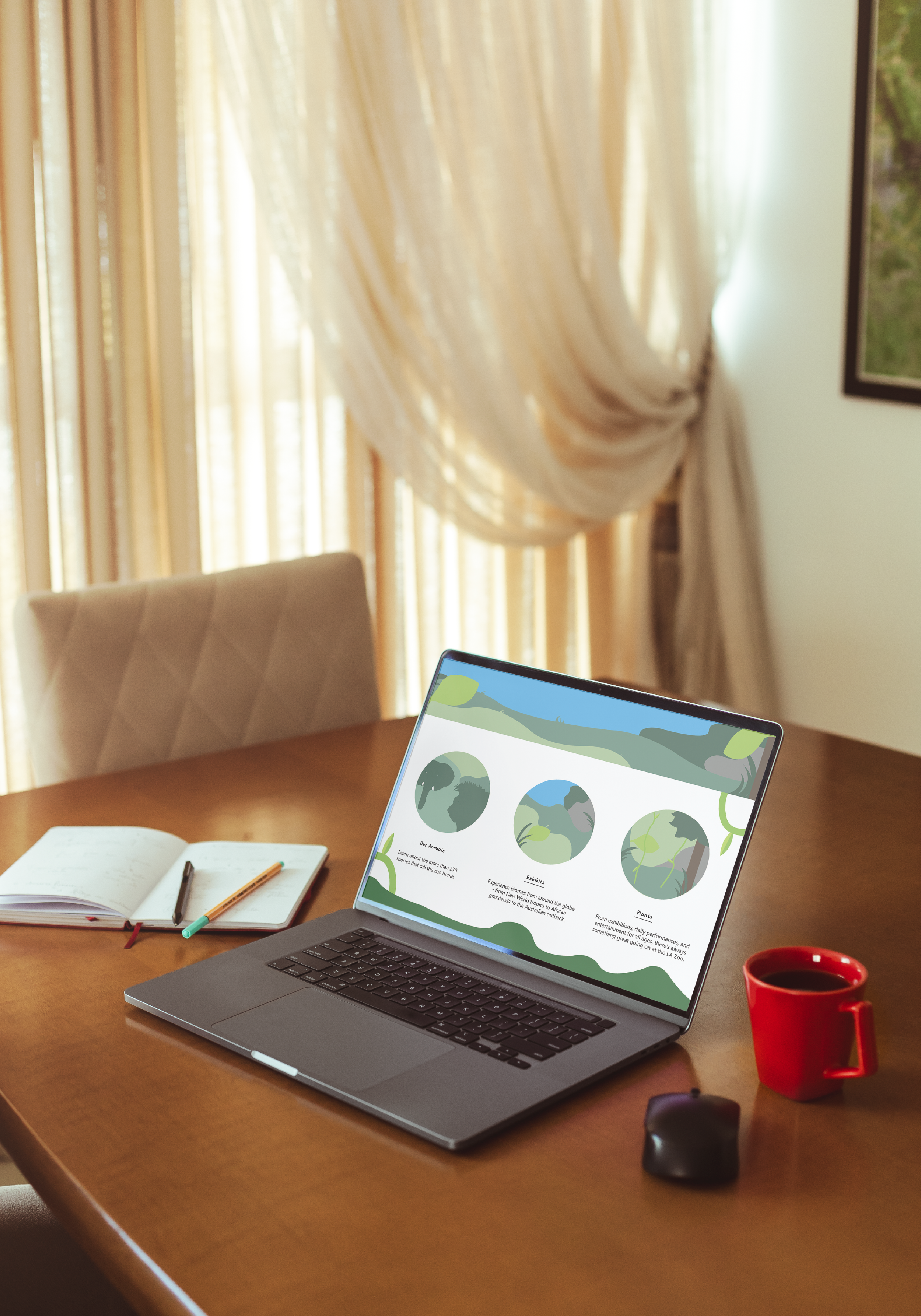 The final design incorporated layers of jungle leaves and moving animals to draw the user into the web experience. Simple navigation and ticket purchase options could allow parents to plan the zoo outing alongside their children. The new website emphasizes the core values of creating connections to nature.